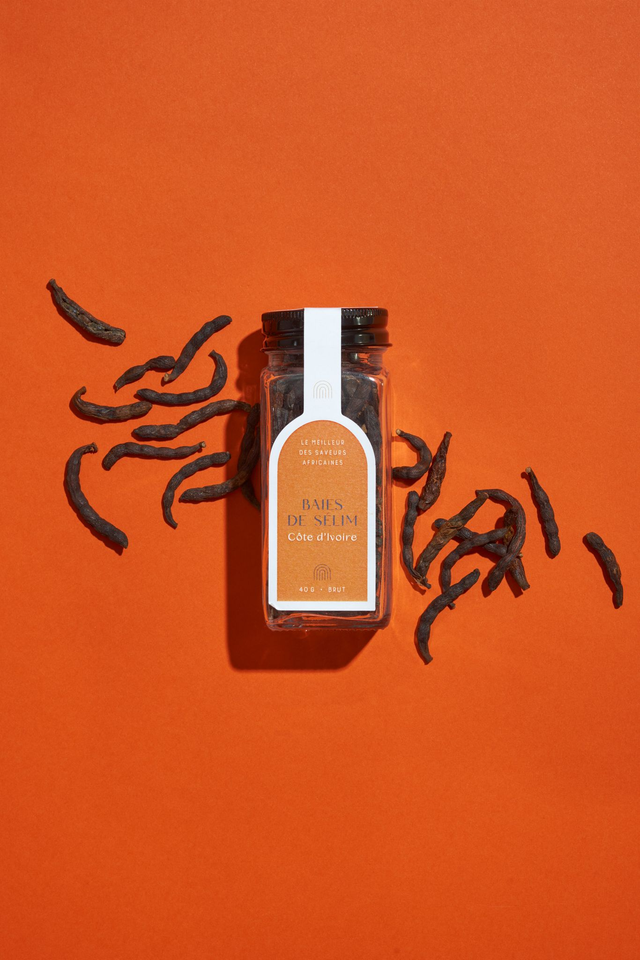 Du nom scientifique Xylopia Aethiopica, ce faux poivre ressemble à une longue et fine gousse noirâtre et bosselée de 3 à 5 cm de long tel un haricot. Chaque cosse contient 5 à 8 graines qui sont très aromatiques. Idéal pour parfumer les plats à base riz, les sauces tomates. Souvent fumé au feu de bois et réduit en mouture grossière, il est associé aux viandes en sauce ou grillées, aux poissons et aux légumes en soupe. La puissance aromatique des graines de Selim nécessite un dosage modéré. Pour un plat de 6 personnes, 4 gousses suffiront. De nature filandreuse, il est préférable de le concasser à l'aide d'un mortier pour en casser les fibres et obtenir une mouture grossière. Évitez de le placer dans un simple moulin à poivre.