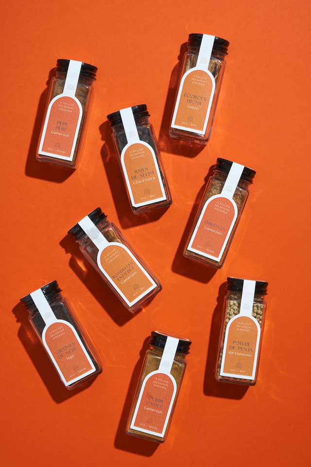 Coffret de 3 épices de 40g chacune : Poudre de Néré, Curry Camer, et Dibanga (poudre de crevettes)